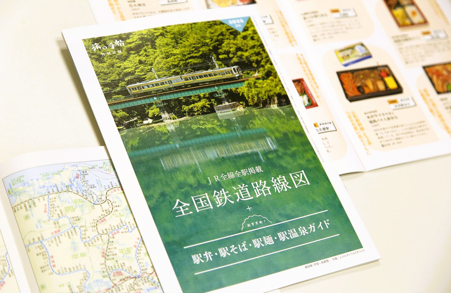 『JR時刻表』と同じ、JR全線全駅を掲載した見やすいA5判の「全国鉄道路線図」が付きます。おすすめの駅弁、駅そば、駅麺、駅温泉も入っているので、お得きっぷの旅に連れてって!