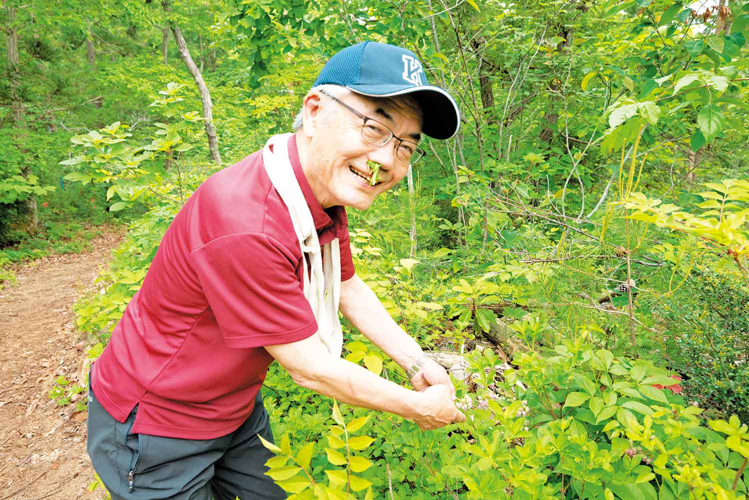 キノコや薬草が生えやすい東向きの山だから「センブリ」や「クロモジ」「コブシ」といった古来、民間薬として利用されてきた薬草も生えている。薬草の葉をもんで香りを嗅いだり、鼻の穴に入れて芳香成分を楽しんだりと“宝の山”を満喫しつつ、森を歩く。
