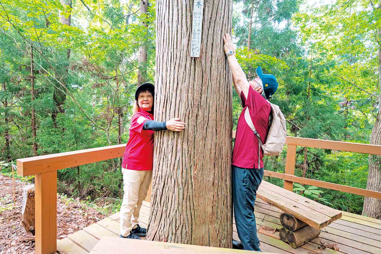 さらに蔵王連峰を見渡す「花咲山展望台」で絶景を眺めたり、樹木に抱きついたり、縄を使ったストレッチをしたりと、さまざまな癒やしのプログラムが組み込まれていて楽しい。かみのやま温泉のどの宿に泊まっても、無料で参加できる気楽さもいい。