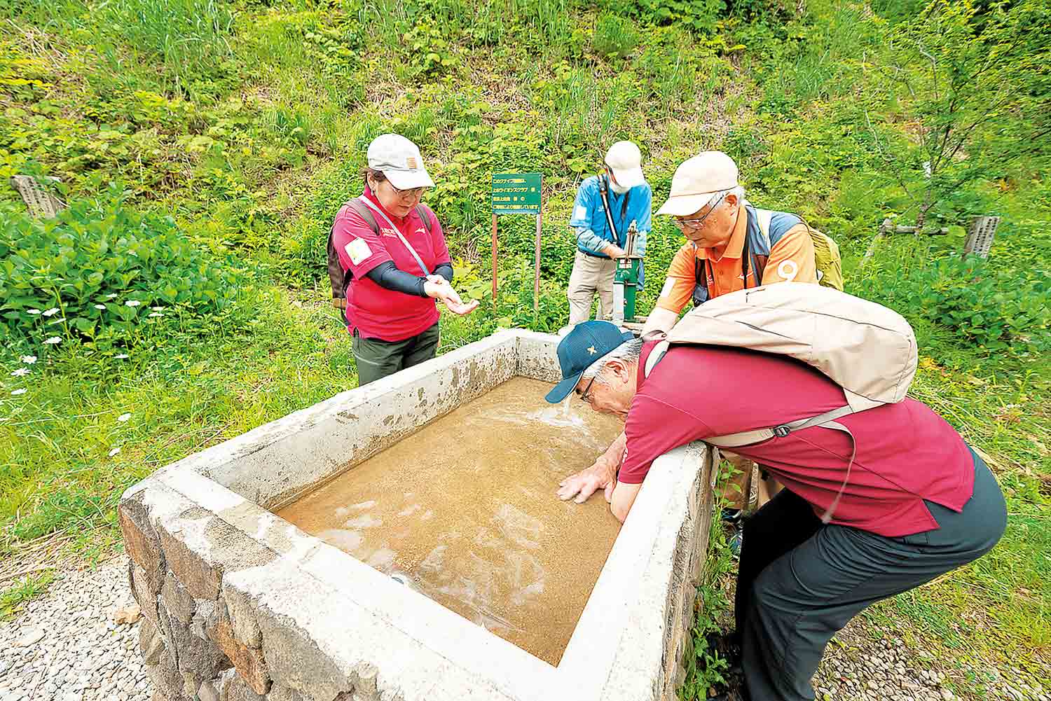 途中、冷たい水に腕を肘までつける「クナイプ療法」で血流アップを図り、葉山神社で「お薬師様」を詣でる。