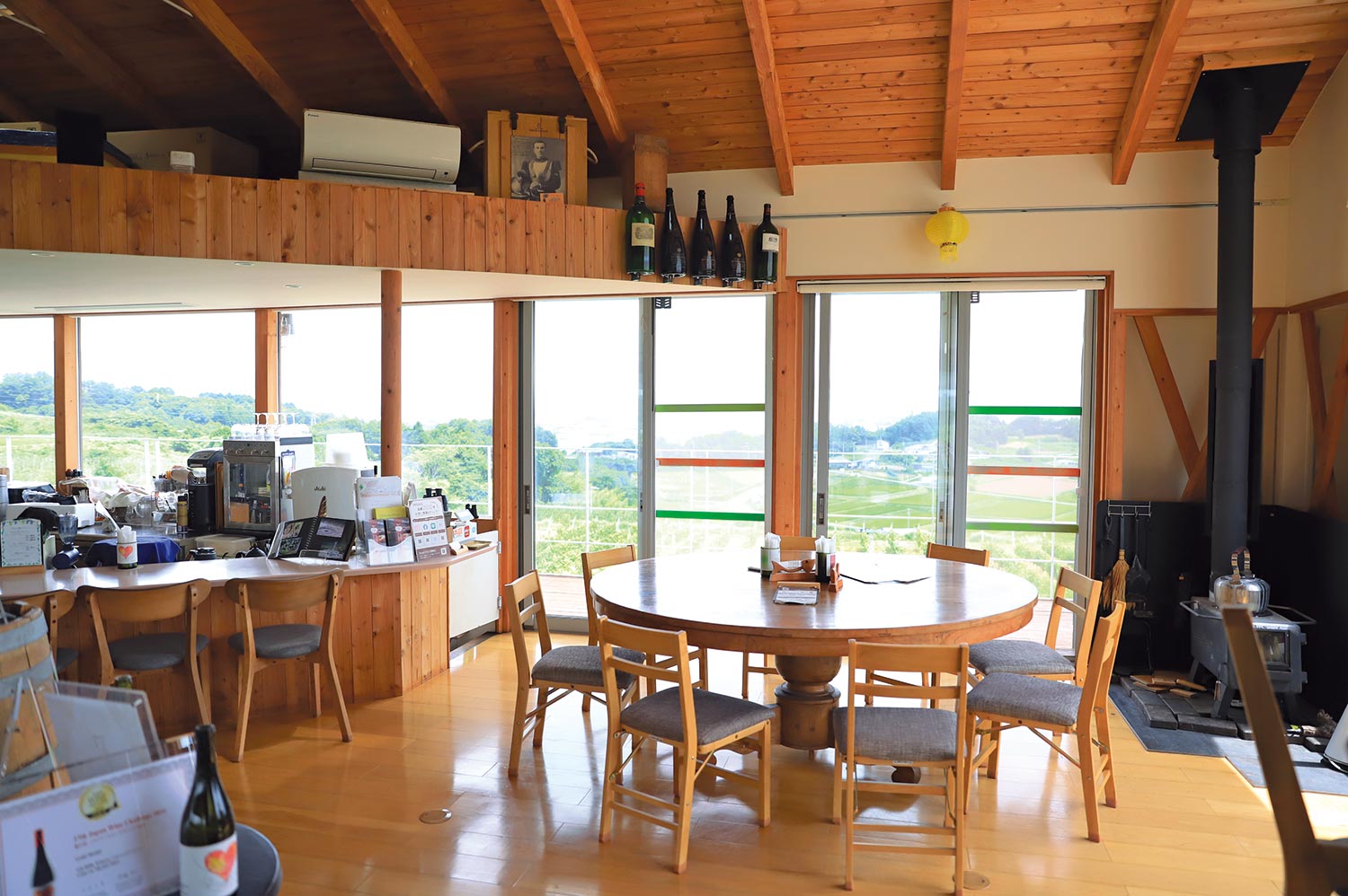 「ここはテーブル状の台地の上。風は通るし、富士山や北アルプスも遠望できます」と富岡さん。毎年、品種ごとに細かく栽培方法を変え、理想のワイン造りを模索している。ワイナリー2階のカフェではベトナム料理を提供!