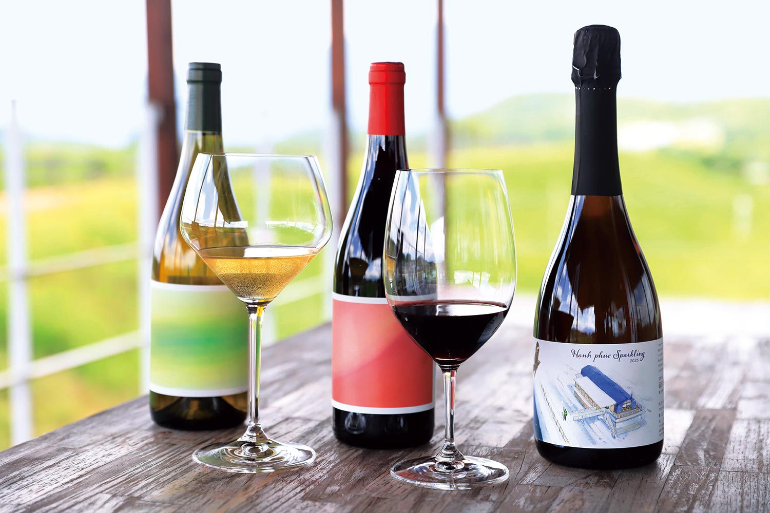 標高約820mの高台にあった荒れ地を開墾し、ブドウ畑に。「自分のブドウ畑が美しい丘陵風景の一部となれて、うれしい」と中根さん。消毒は必要最小限で育てたブドウを使ったワインは、ミディアム~ライトな味わいで香り華やか。