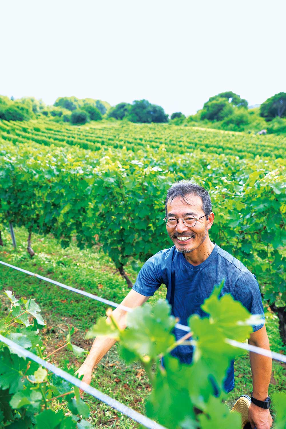 「風通しがよくて日照時間も長いから、ブドウが病気になりにくい。朝霧が出てブドウを冷やしてくれるので、いい酸も残る。ブドウ作りには最高の場所ですよ」