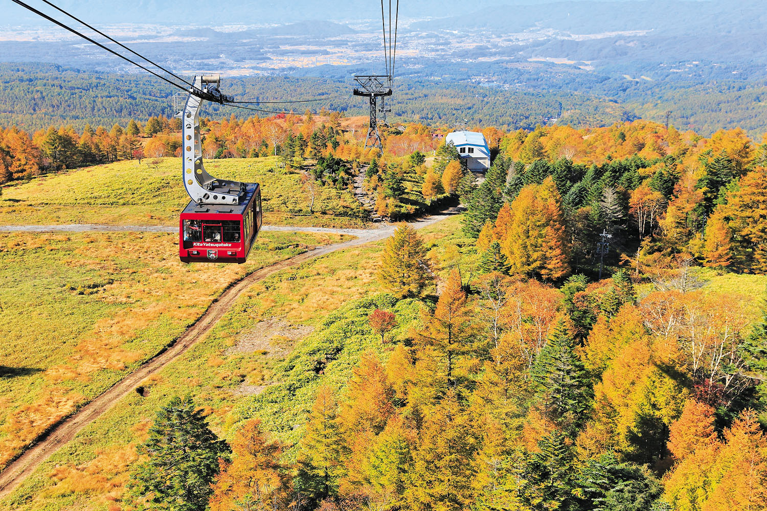 八ヶ岳の北横岳と縞しま枯がれ山やまの鞍部に架かり、ゴンドラからは八ヶ岳連峰や日本アルプス、カラマツやナナカマドなどの紅葉の山並みが素晴らしい。山頂には坪庭自然園(クロマメノキが9月下旬に紅葉)や『山のカフェ2237』もある。