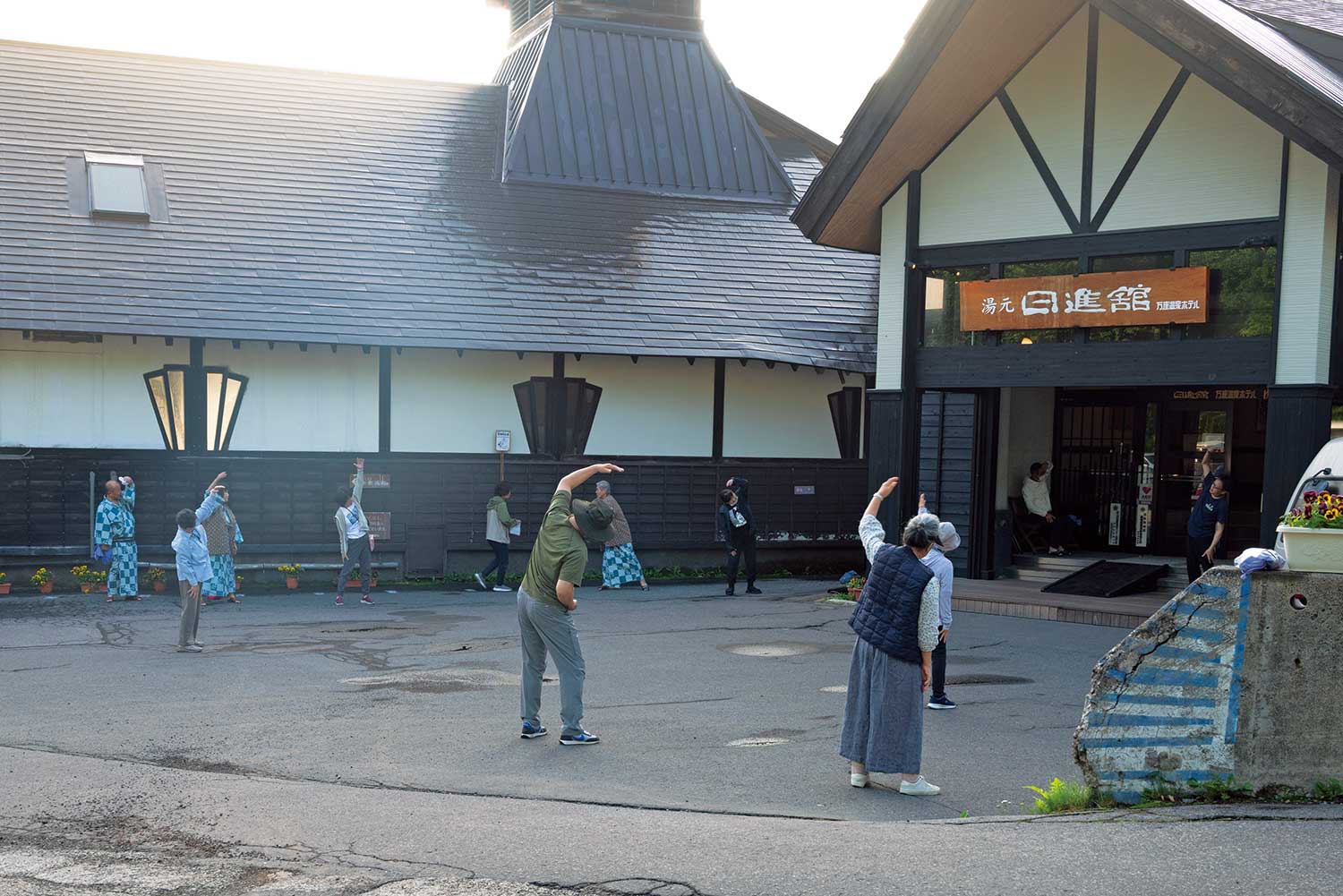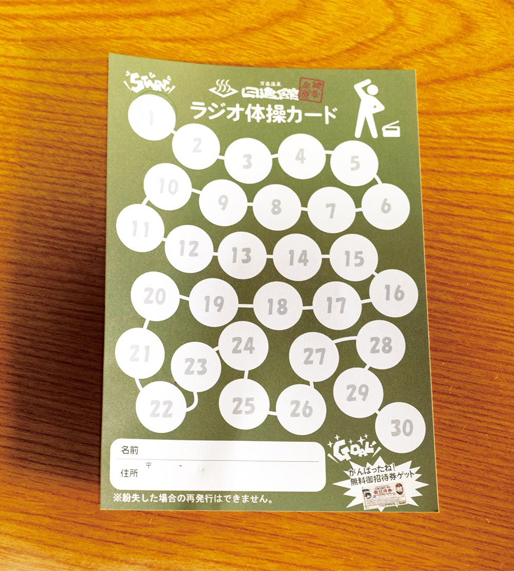 毎朝5時50分からのラジオ体操で心身ともに健康に。スタンプを集めると1泊無料になる、うれしい特典も。