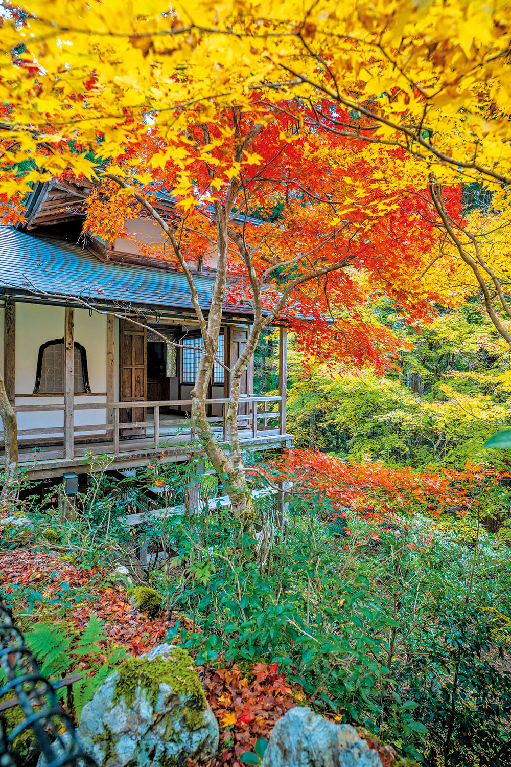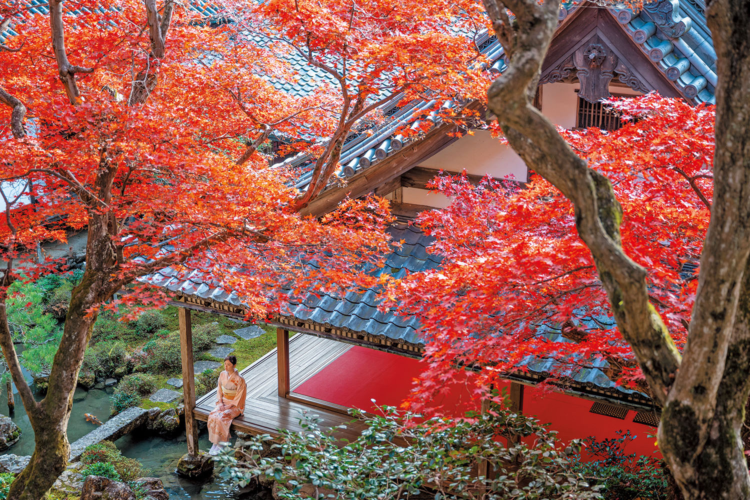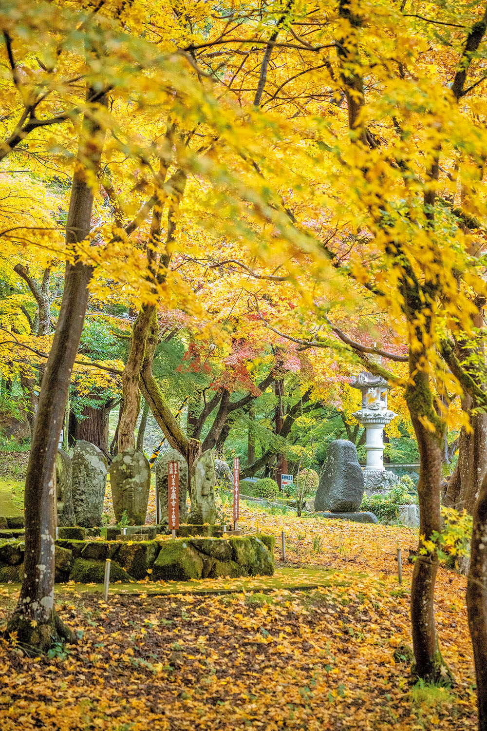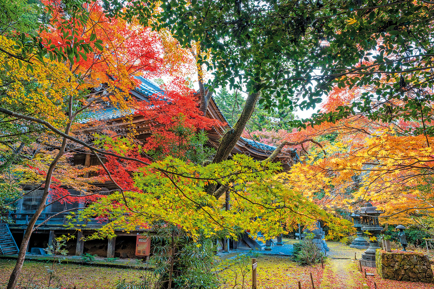 京都府の北西部、福知山市の豊かな自然に囲まれて立つ“丹波のもみじ寺”。聖徳太子の実弟・麻呂子親王の勅命による創建と伝わる。とりわけ秋の紅葉が美しく、境内が真っ赤に染まる風景は必見だ。朝早く出かけるのが吉。