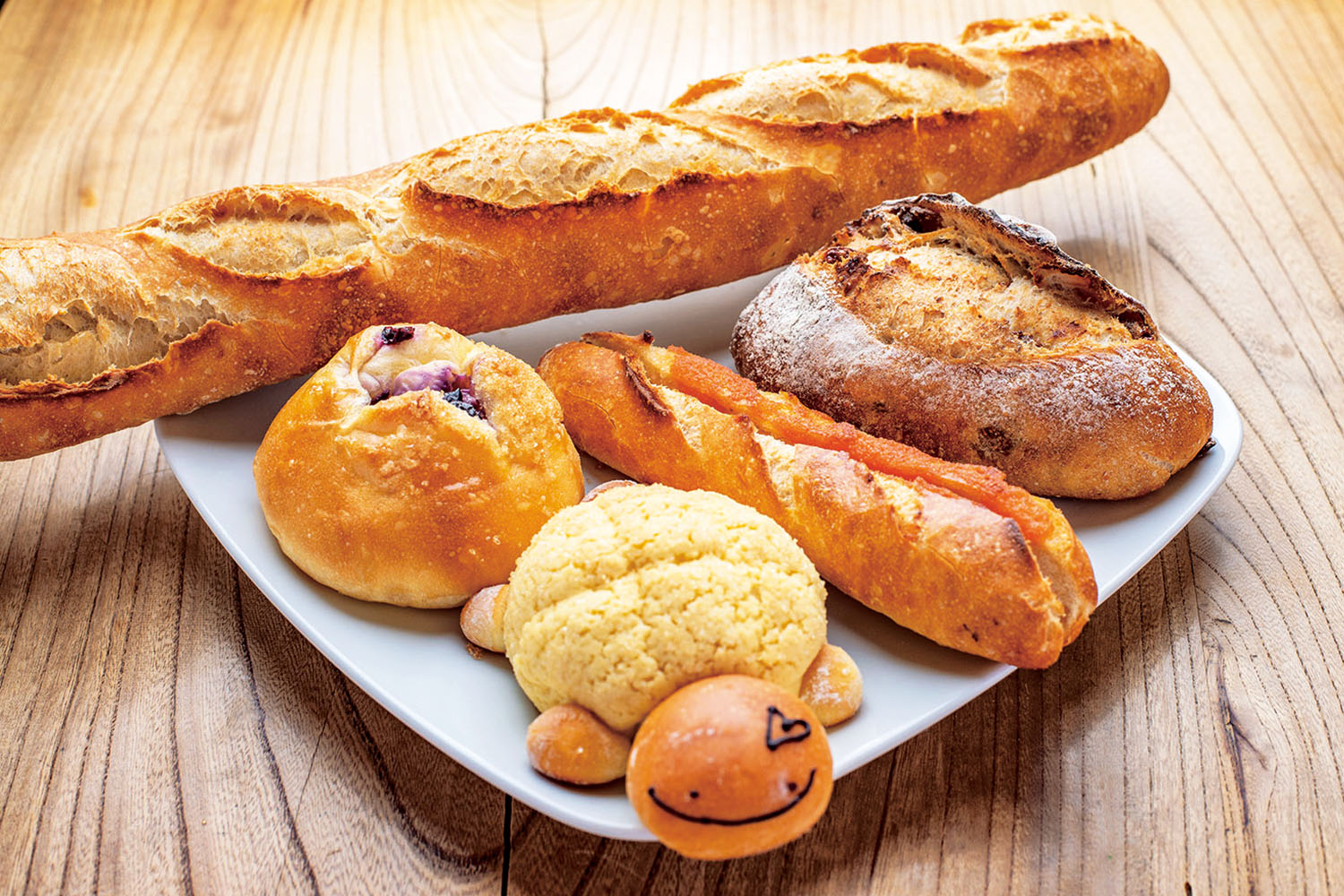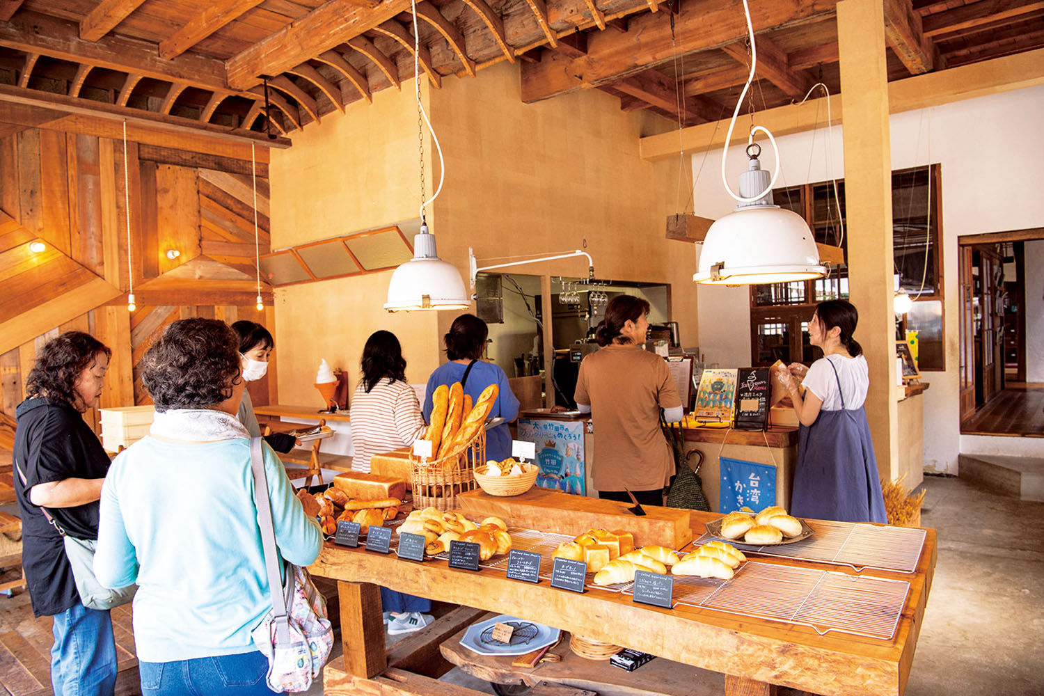 トマトやブルーベリー、ジャガイモといった地元の旬の食材に、九州産の小麦と近隣の湧水を使って作る。イートインスペースがあるので、焼きたてをすぐに食べられるのもうれしい。人気のバゲットは午前中に売り切れることも。