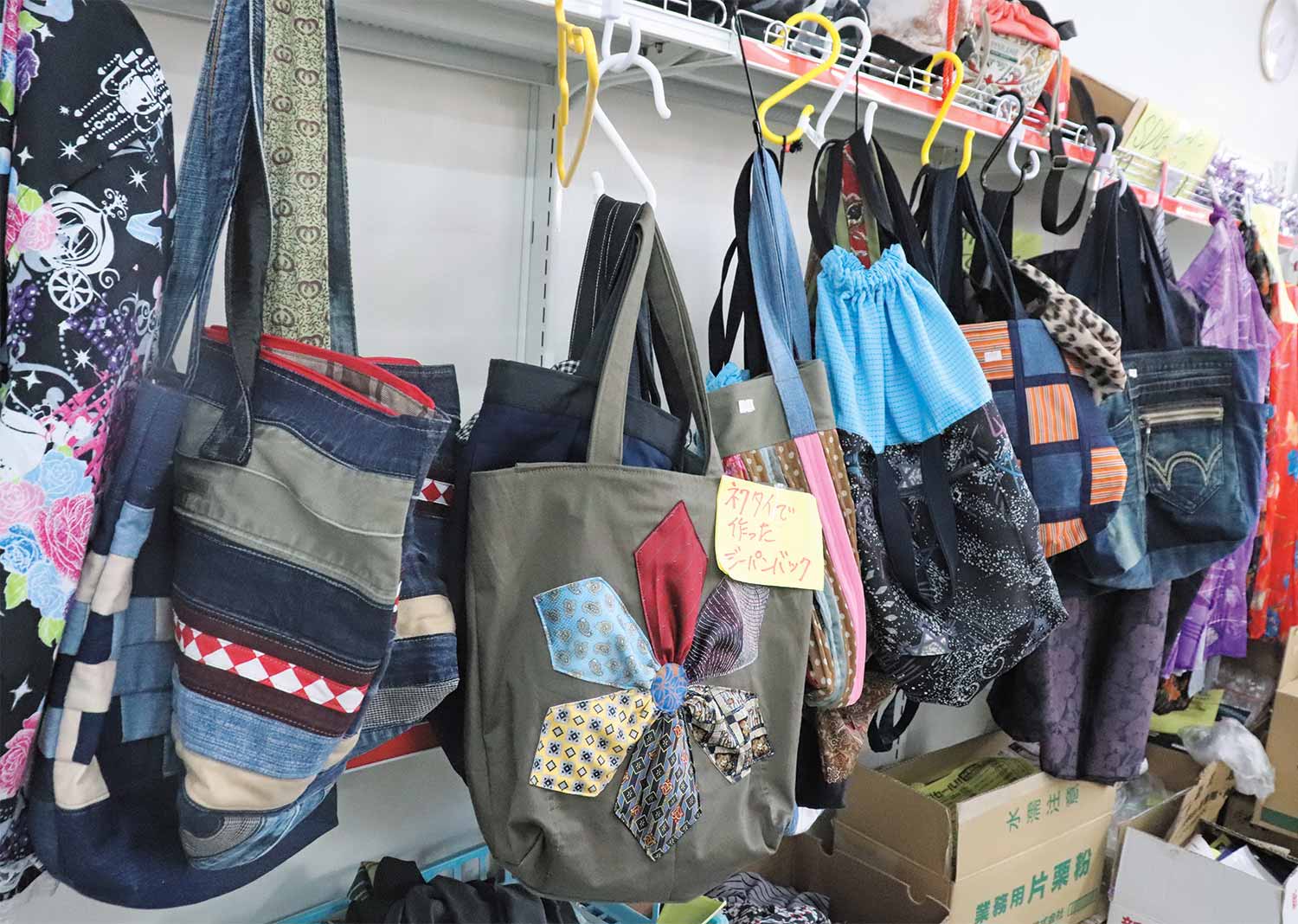 地元の常連さんも納得の、青森の定番ご当地食もしっかり網羅。さらに手作りバッグや服は、鯵ヶ沢町で集めた不要な布を再利用した同店のオリジナル品です。
