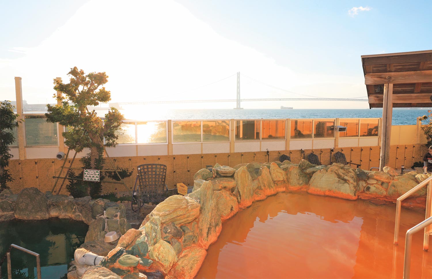 『龍(たつ)の湯』水平線上の大橋を眺めて外気浴
