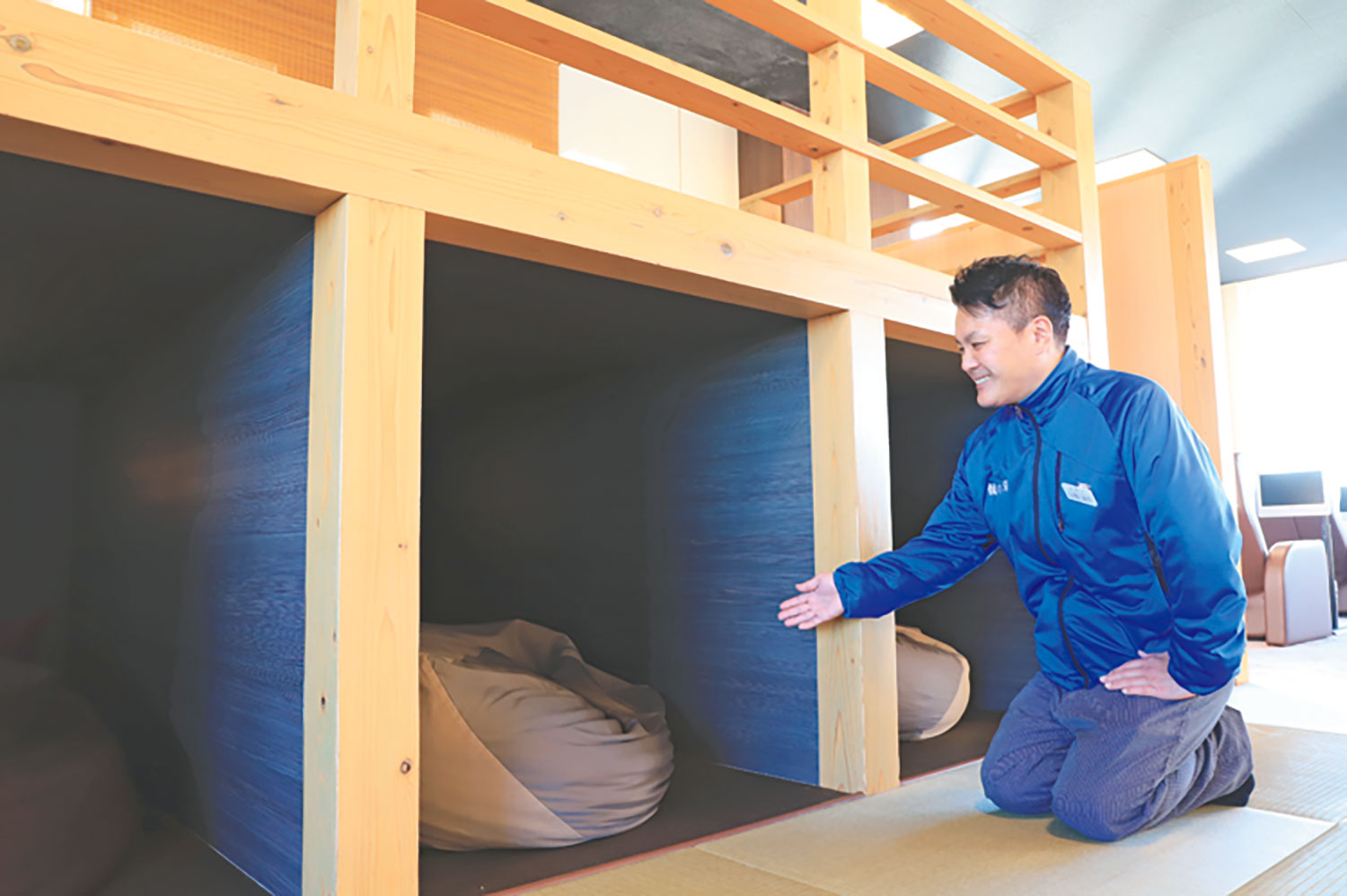 広い露天風呂には4種の浴槽があり、一段高い展望風呂や外気浴のイスからは明石海峡大橋を一望。内風呂には5段のタワーサウナがあり、一日3回ロウリュウも。入浴後は、マッサージチェアやカフェエリアがある2階の休憩処でリラックス。
