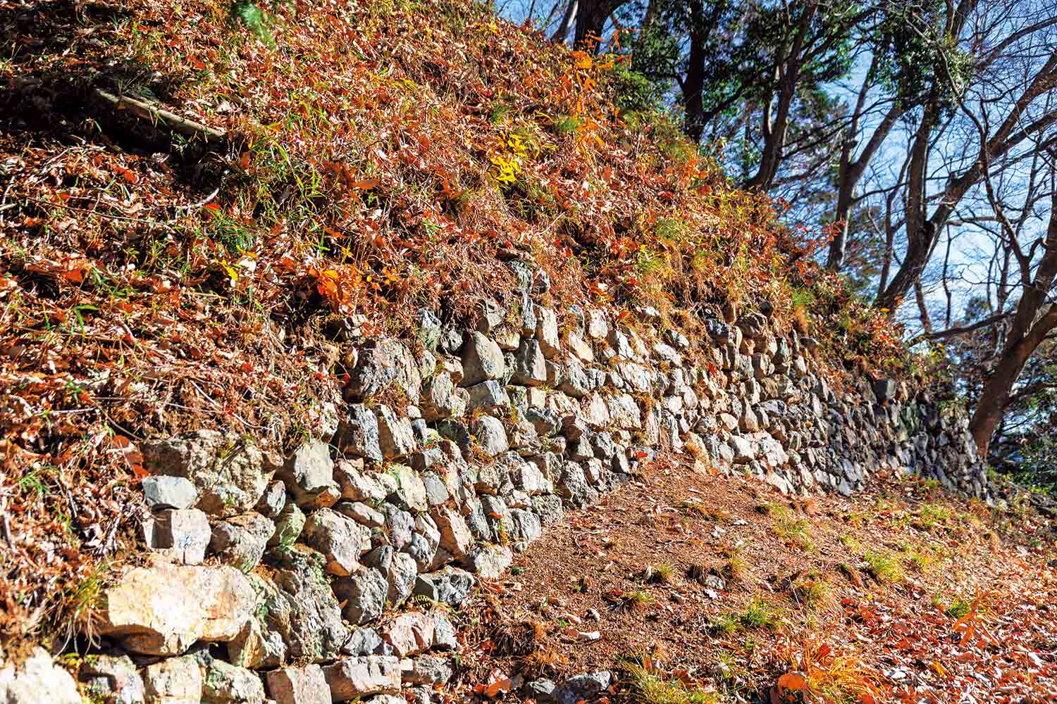 土塁、石垣、曲輪(くるわ)などの山城の名残、本丸、尾根を断った大堀切を経て、長政の父・久政の拠点、京極丸に到着。