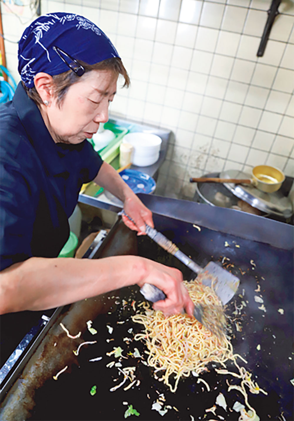 那珂湊や大洗から魚介を仕入れる海鮮料理に加え、65年前から続く焼きそばが名物。わたなべ製麺所の手延べせいろ蒸し麺をラードで炒め、さらにとんこつスープをかけて蒸し焼く焼きそばは、濃厚で食感もちもち!
