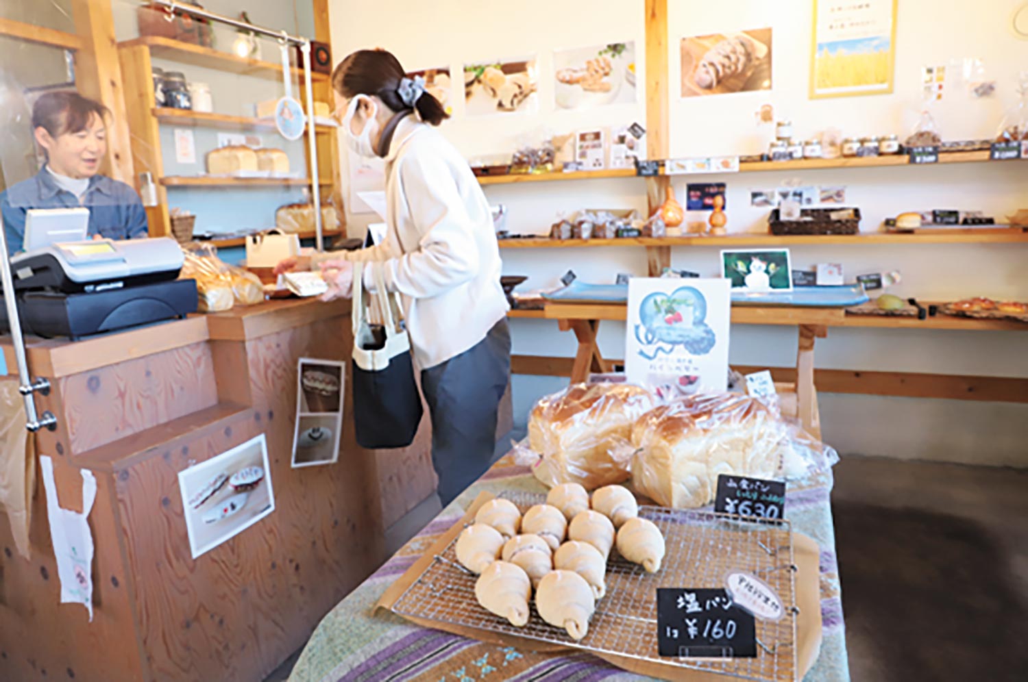 北海道出身の夫妻が開業。道産小麦のゆめちからと春よ恋で作るパンは、サクッとしつつもっちり食感。平飼い卵の常ひたち陸ハイエッグや阿字ヶ浦のアーモンドバター、イチゴといった地元食材を盛り込んだ菓子パン、総菜パンも!