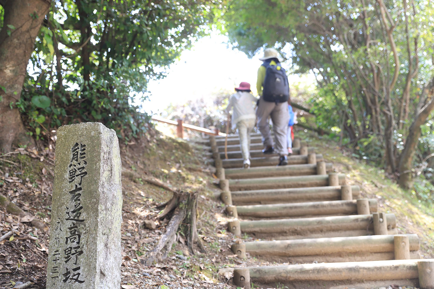 熊野川が「川の熊野古道」なら、高野坂・王子ヶ浜は「海の熊野古道」。波で削られた丸石を踏みながら王子ヶ浜を歩き、JR紀勢本線の高架下を潜ると、高野坂の入口となる広角口(ひろつのぐち)へ。高低差の少ない約1.5kmの中に熊野灘の眺望ポイントや石畳があり、熊野古道の中でも歩きやすい区間だ。
