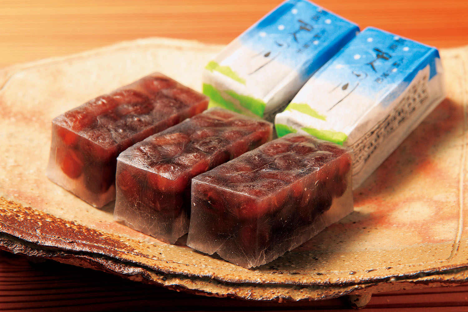 名物は、大納言小豆を炊いて蜜に漬け、寒天で固めた天の川。シャリッとした口あたりとあっさりとした甘さが魅力だ。ほどよいやわらかさの大納言羹(だいなごんかん)900円もお土産に人気。看板がないのは、当初は店売りではなく卸し中心だったから。