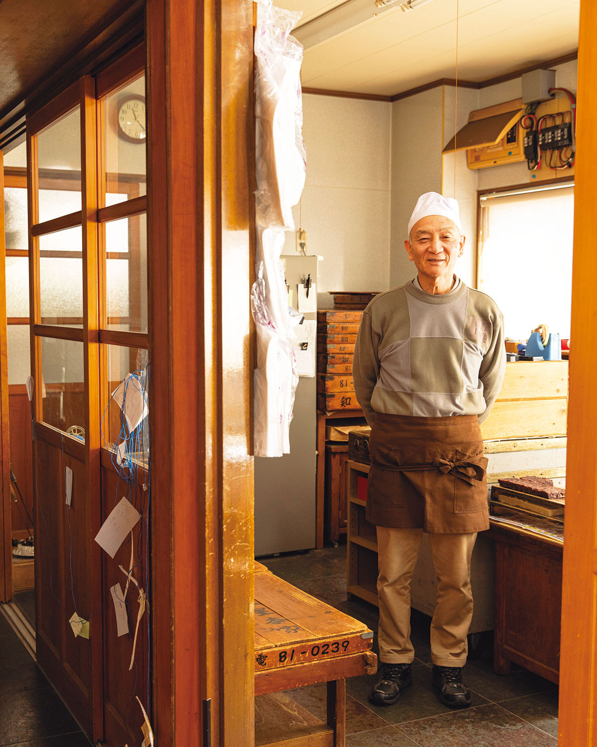 街道筋のよろづや&茶店が「豊川や岡崎を出発した人がこのあたりで小腹がすくから」と、明治22年(1889)にあんを挟んで出すように。水飴を加えた生地がしっとりもっちり。甘さ控えめの自家製あんこになごむ。