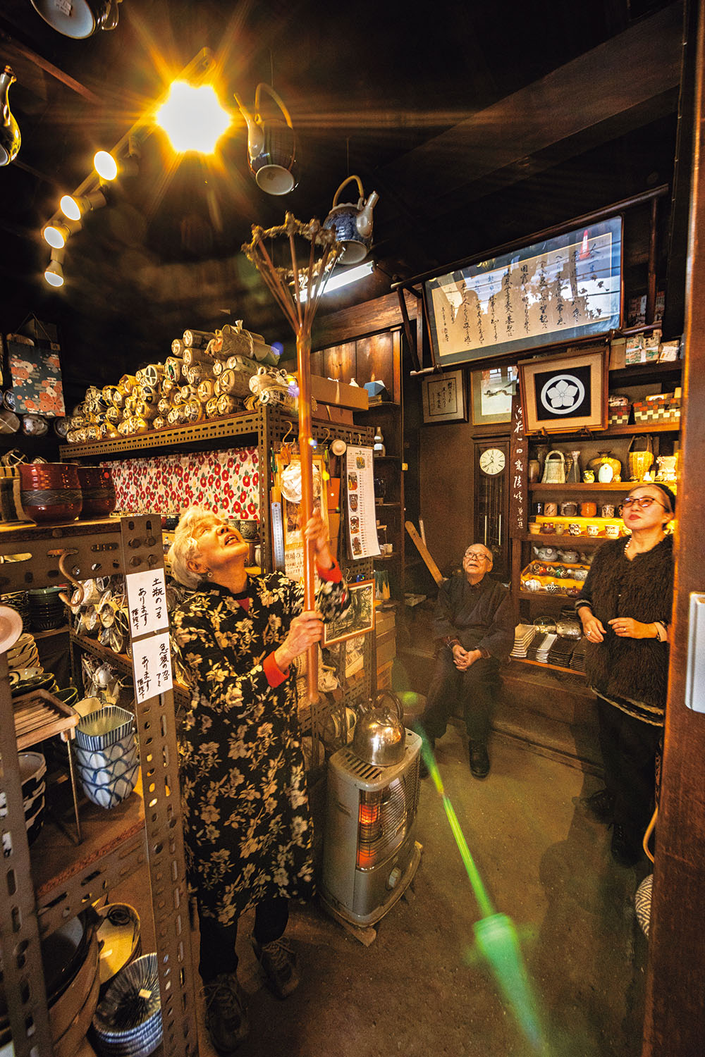 また、江戸末期から続く『恵比寿屋陶器店』も必見。小ぶりな手描き酒器セットを見ていると「これはね、家に来た客に“これでも呑んで待っててください”と、もてなしに使った道具。これを出されたら酔ったフリをせんといかん。むかしの粋な遊びですね」と、3代目の小久江(おぐえ)夫妻が教えてくれた。