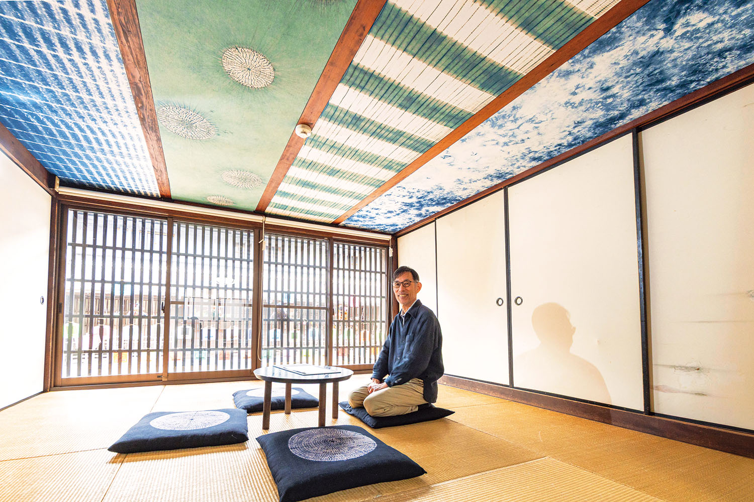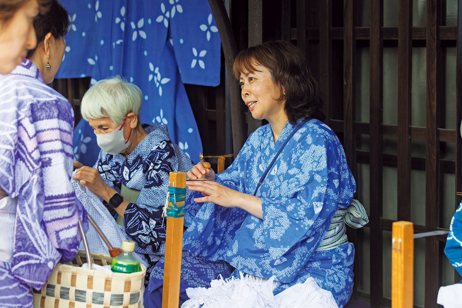 代ごとに染め職人だったり、くくり名人だったり。「いまは全部やります」と7代目の濱島正継さん。10年ほど前から「伝統文化を学べるように」体験を開始。雪花絞り、筋絞りなど、技を教わりながら自分好みの作品が作れる。