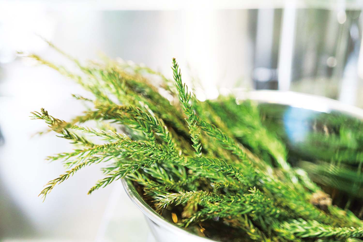 森に囲まれた小さな工房でできるのは、香りの蒸留体験。那須地域の八溝(やみぞ)杉の枝葉や国産柑橘の果皮、畑で摘み取るハーブを使い、香りの成分を丁寧に抽出していく。蒸留の様子をただ見つめるだけでも癒やされる。