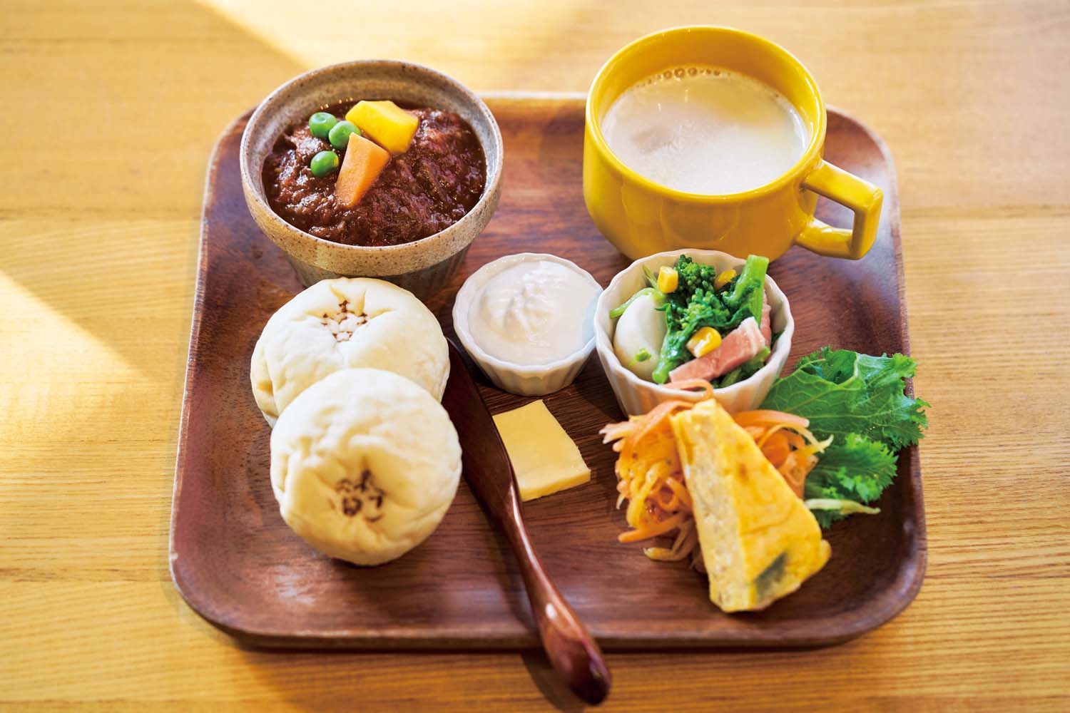 『チーズガーデン那須本店』の敷地内にあるカフェ。季節の花が彩るアプローチを進み、滝の水音が響くテラス席に座れば、喧騒はさらに遠のく。チーズソースで味わう和豚のカツレツをはじめ、料理にも多彩なチーズを生かす。