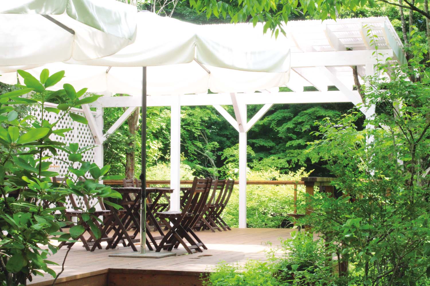 那須町のはずれの伊王野地区にある『garden AUX PARADIS(ガーデン オゥ パラディ)』のテラス席は、店内よりも広い40席が設けられていて、テラスから先に席が埋まっていく。