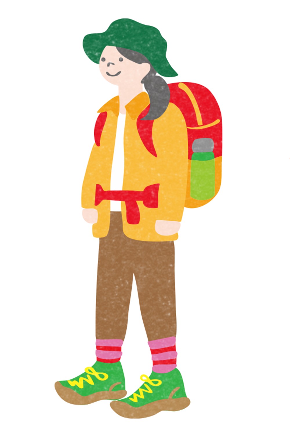 突然の雷雨で雨宿りできない場合も、45Lのゴミ袋があれば荷物が守れ、簡易の合羽(かっぱ)にもなる。山道を歩くときは虫除けスプレー、季節によりヤマビル対策の忌避剤などがあると心強い。歩数計(スマホアプリも可)があれば、ゴールしたときの達成感はよりアップ。
